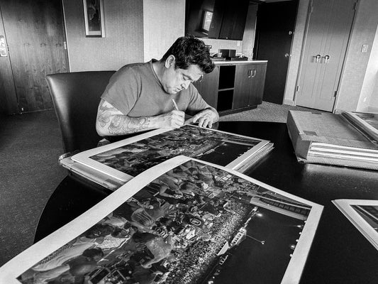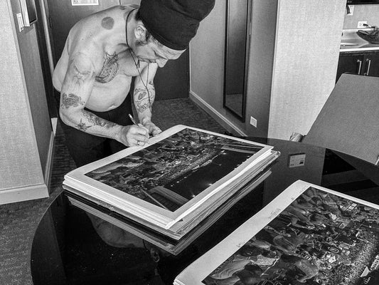The "Autograph Series" are very limited edition and special prints signed by NOFX (Fat Mike, Melvin, El Hefe, and Smelly). They were hand-carried to Chicago (from Hawaii) during the Riot Fest to be personally signed by NOFX. Only less than 30 were printed of each photo.
